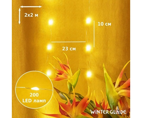 Гирлянда светодиодная Занавес Winter Glade 200 ламп имеет длину 2 м.