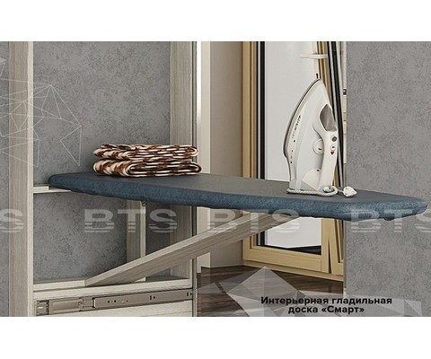 Гладильная доска надежно зафиксирована, она доступна при открытии зеркальной двери-купе в сторону.
