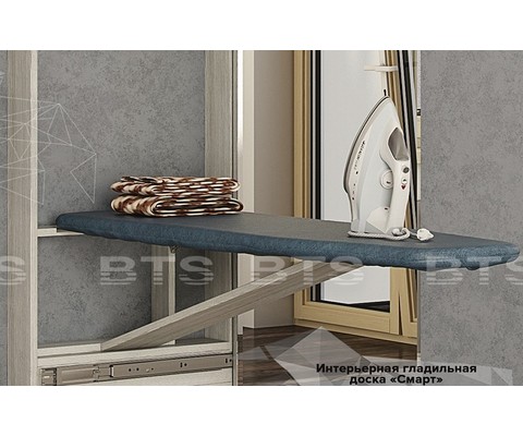 Гладильная доска надежно зафиксирована, она доступна при открытии зеркальной двери-купе в сторону.