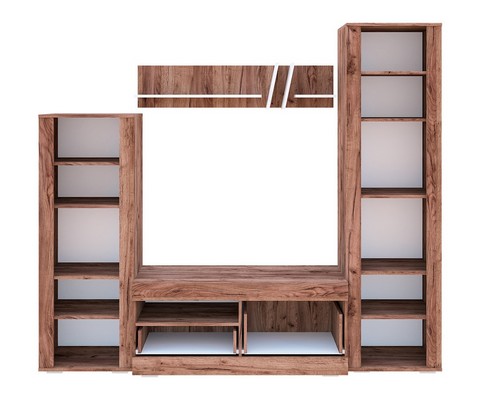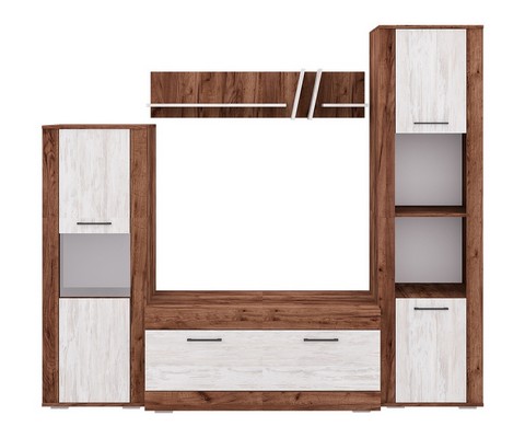 Комплектация гостиной Алиса-1: шкаф-пенал ПП-5 142х52х38 см, тумба ТВ-14 52х116х47 см, шкаф-пенал ПП-6 192х52х38 см, полка навесная ПН-8 135х80х38 см.