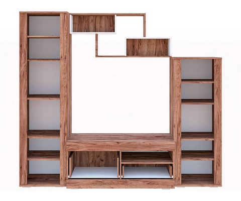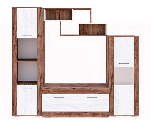 Комплектация гостиной Алиса-2: шкаф-пенал ПП-5 142х52х38 см, тумба ТВ-14 52х116х47 см, шкаф-пенал ПП-6 192х52х38 см, полка навесная ПН-7 168,5х80х38 см.