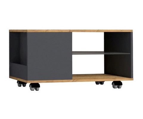 Журнальный стол на колесиках, что позволяет менять положение столика в комнате.