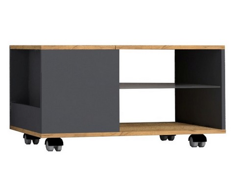 Журнальный стол на колесиках, что позволяет менять положение столика в комнате.