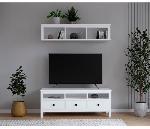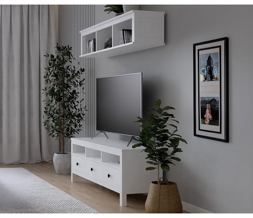 Гостиная Кымор. Комплект 10 - полка и ТВ-тумба (белый)
