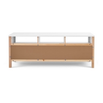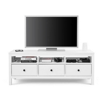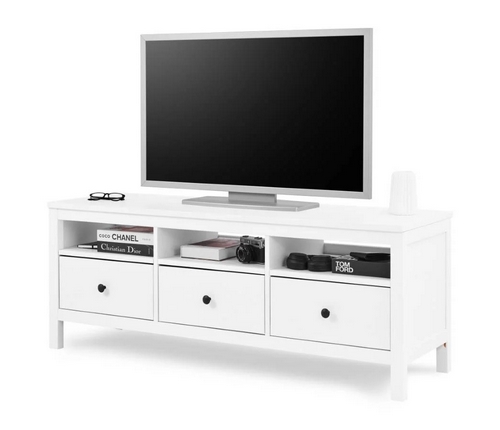 ТВ-тумба Кымор оснащена тремя вместительными выдвижными ящиками с черными ручками-кнопками.