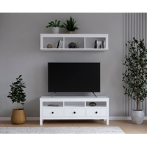 Гостиная Кымор. Комплект 10 - полка и ТВ-тумба (белый).