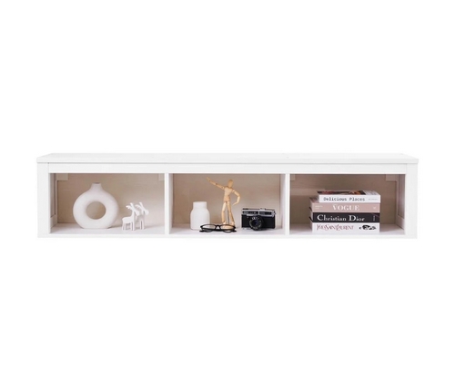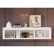 Навесная полка Кымор состоит из трех открытых секций, что позволяет удобно разместить книги, фотографии, декоративные элементы и другие предметы.