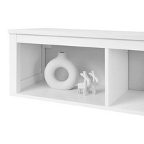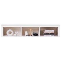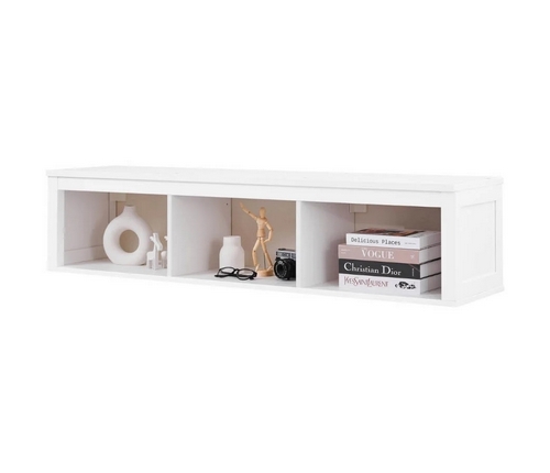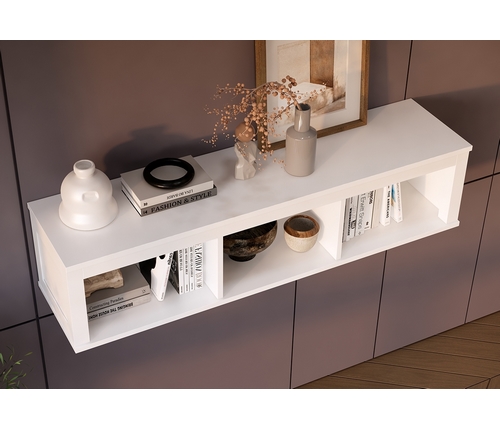 Навесная полка Кымор состоит из трех открытых секций, что позволяет удобно разместить книги, фотографии, декоративные элементы и другие предметы.