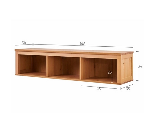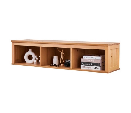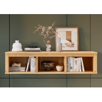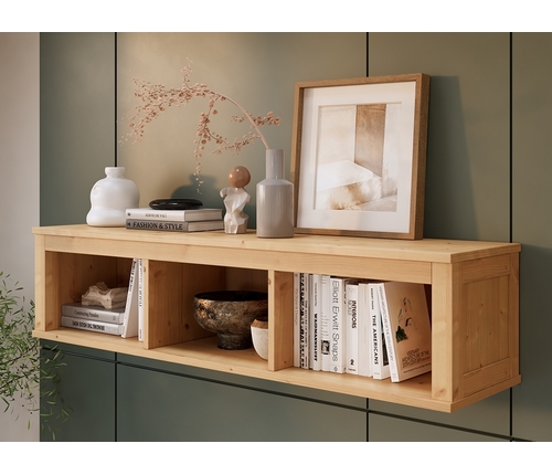 Навесная полка Кымор состоит из трех открытых секций, что позволяет удобно разместить книги, фотографии, декоративные элементы и другие предметы.