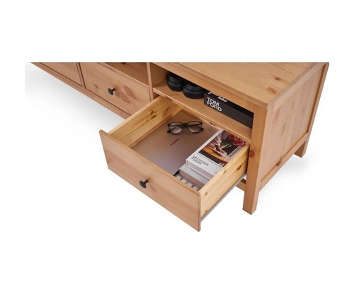 Над ящиками расположена открытая ниша, разделенная на три секции, для удобного размещения ресивера, игровой консоли и любых других предметов.