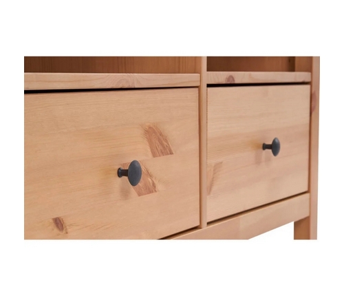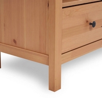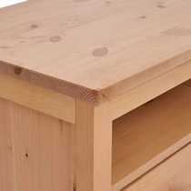 Роликовые направляющие обеспечивают плавное выдвижение ящиков, а неокрашенная внутренняя часть подчеркивает естественность материала.