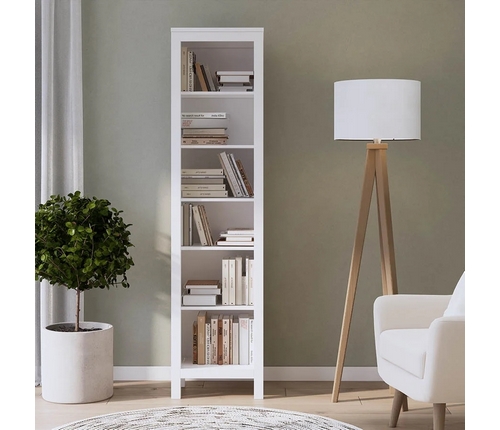 Стеллаж Кымор состоит из нескольких полок, которые обеспечивают достаточно места для книг, декора и документов, а открытая конструкция облегчает доступ и демонстрацию предметов.