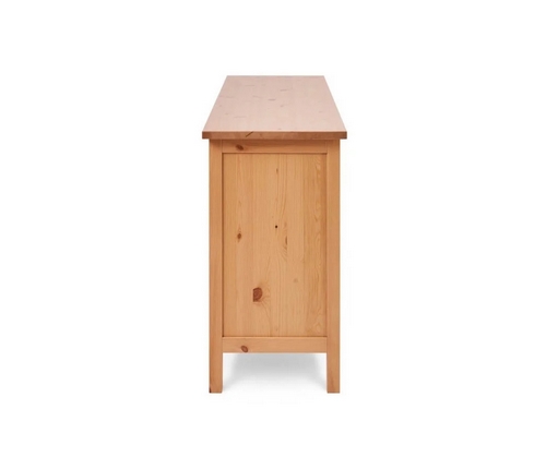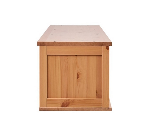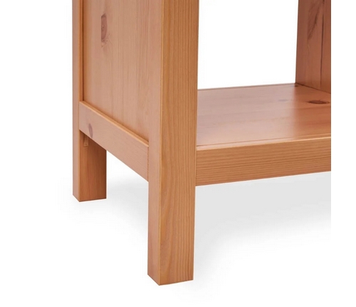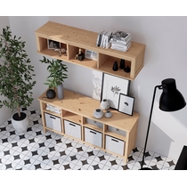 В комплект входят навесная полка и стол-консоль, изготовленные из экологичного массива сосны.