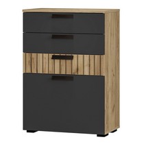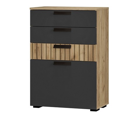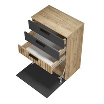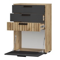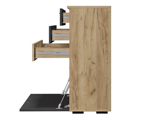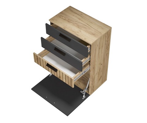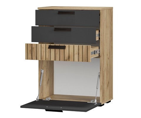 Комод Мишель тип 1 КМ-12 оснащен тремя ящиками и нижней полкой с откидным фасадом.