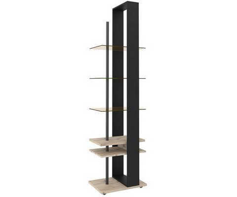 Шкаф оснащен открытыми полками и двумя закрытыми отсеками, полки можно регулировать по высоте.