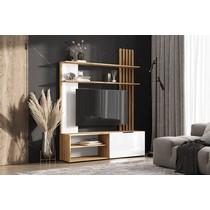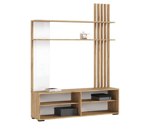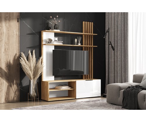 Гостиная Роджина (белый глянец, дуб крафт) — это изысканный элемент мебели. Секция предназначена для установки телевизора и оснащена полками.