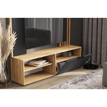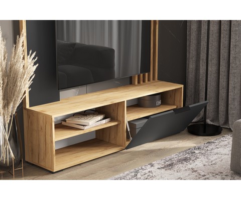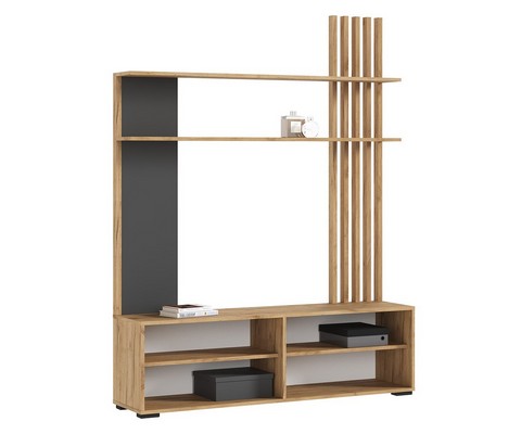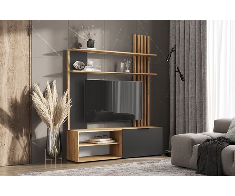 Гостиная Роджина (графит, дуб крафт) — это изысканный элемент мебели. Секция предназначена для установки телевизора и оснащена полками.