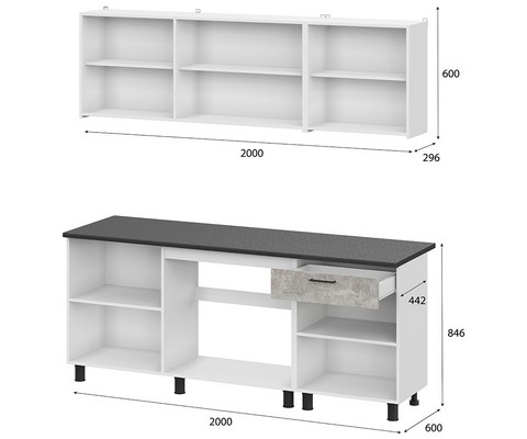 Готовая кухня 2.0 м КГ 9 (цемент)
