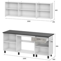 Кухонный гарнитур состоит из столешницы, настенных и напольных модулей, которые обеспечивают удобное хранение посуды, продуктов и других кухонных принадлежностей.