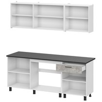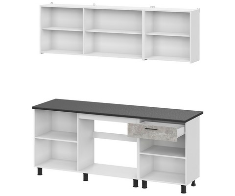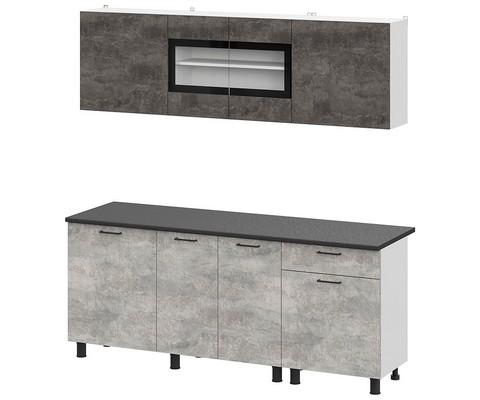 Готовая кухня КГ 9 - это стильное и функциональное решение для вашей кухни. Интересное исполнение темного и светлого оттенка цемента в сочетании с черной столешницей придает кухне особенный шарм.