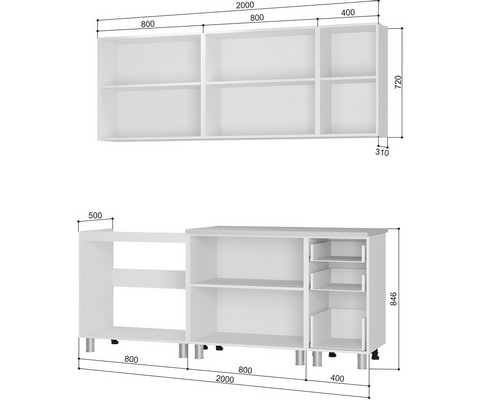 Материал фасада: верхние модули ЛДСП белый с фотопечатью, нижние МДФ F02,