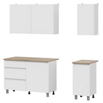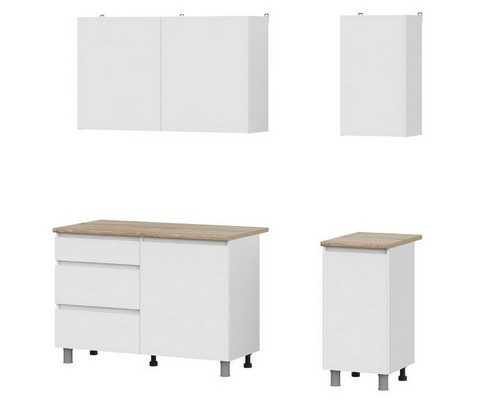 Нижний ряд состоит из модуля под мойку, модуля с выкатными ящиками и глухого шкафа.