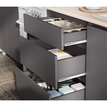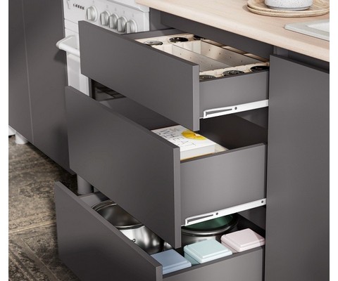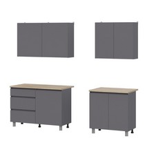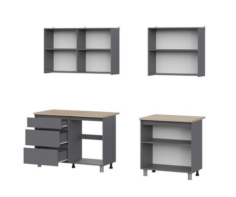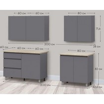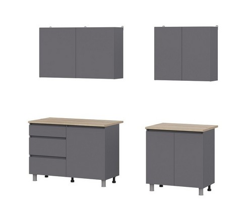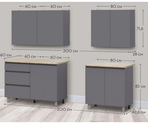 Готовая кухня Денвер 2 м графит серая/сонома имеет однотонные матовые фасады приятного серого оттенка без лицевой фурнитуры.