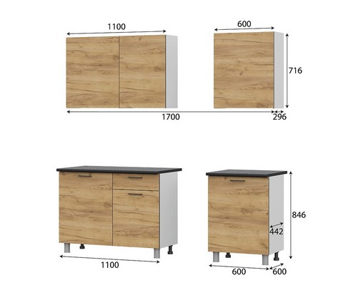 Готовая кухня Лаванда (дуб золотой) без столешницы отличается минимализмом и эргономичностью. За счет дизайна в светлых оттенках, которые зрительно расширяет помещение и компактных размеров данная модель оптимально подойдет для небольших квартир и студий.