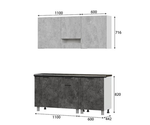 Готовая кухня Розалия (цемент светлый/цемент темный) без столешницы