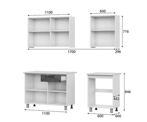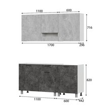 Готовая кухня Розалия (цемент светлый/цемент темный) без столешницы является компактным и функциональным решением для вашего дома. Подходит для меблировки кухонного пространства в современном и сдержанном дизайне.