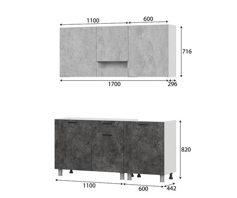 Готовая кухня Розалия (цемент светлый/цемент темный) без столешницы