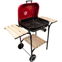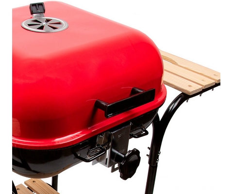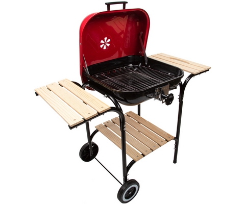 Конструкция обладает устойчивостью благодаря четырём ножкам, а с помощью колёс гриль можно переместить в удобное место.