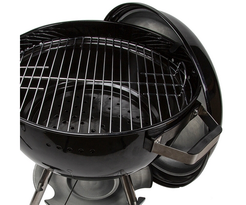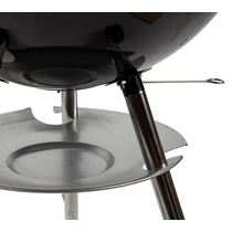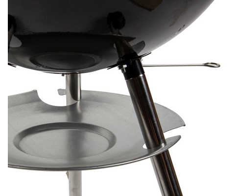 У гриля есть полочка, на которой можно удобно расположить всё необходимое для процесса готовки, а внизу конструкции находится специальный пеплосборник.