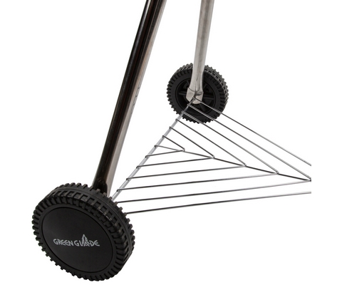 Данная модель обладает компактным размером и удобно разместится в любом уголке садового участка, а благодаря наличию колёс её можно легко перемещать.