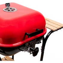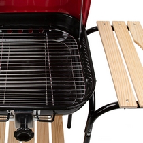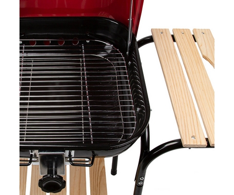 Конструкция обладает устойчивостью благодаря четырём ножкам, а с помощью колёс гриль можно переместить в удобное место.