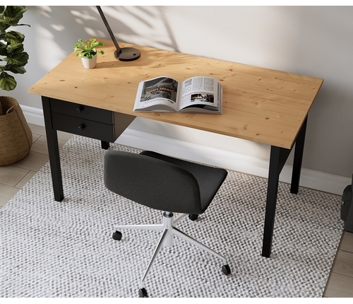 Письменный стол Вухтым оборудован двумя ящиками с деревянными направляющими, рассчитанными на нагрузку до 5 кг каждый, и предусматривает возможность установки ящиков с любой стороны - правой или левой.