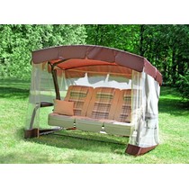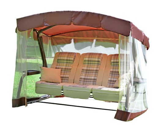 Качели садовые 3-х местные Палермо Премиум мебельная ткань коричневый / бежевый