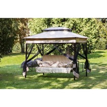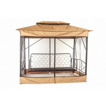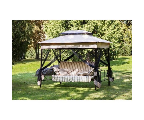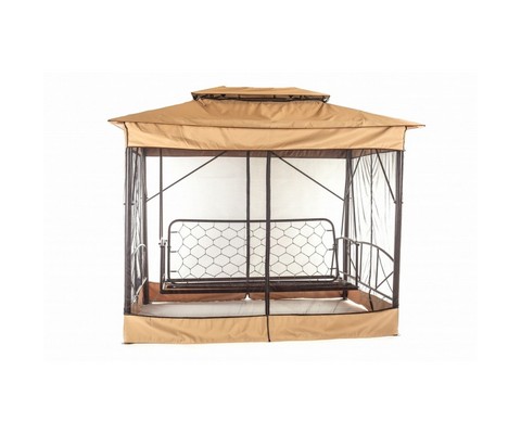 Качели садовые элитные четырехместные Шатер (коричневый, полоска)