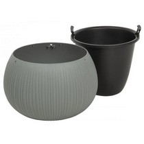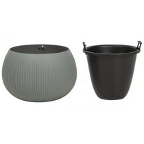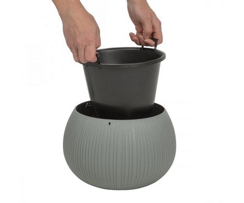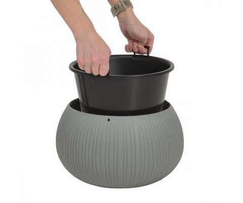 Кашпо для цветов Beton Bowl из двух предметов: внутренней емкости для растения и декоративной емкости.