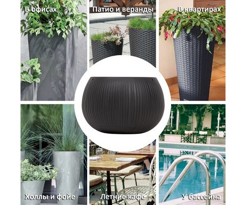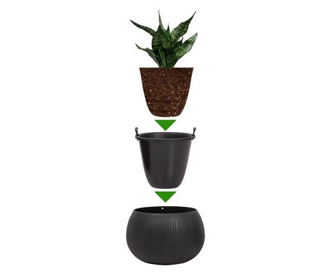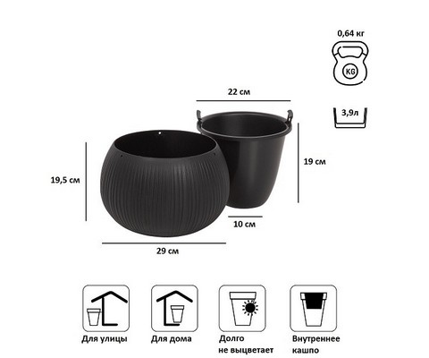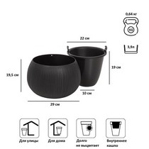 Кашпо для цветов Beton Bowl DKB290-B411 чёрный 2 предмета 3,9 л состоит из двух предметов - внутренней и декоративной емкости.