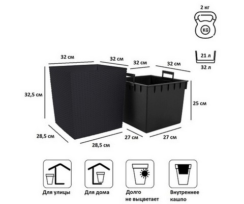 Кашпо для цветов Rato Low DRTS325L-S433 21 и 32 л (антрацит)