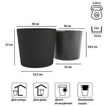 Кашпо из двух предметов: внутренней емкости для растения и декоративной емкости.