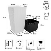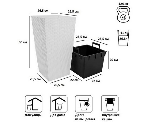 Кашпо для цветов Rato Square DRTS265-S449 11 и 26,6 л (белый)
