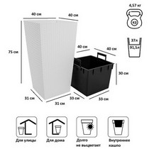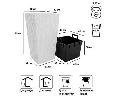 Кашпо для цветов Rato Square DRTS400-S449 37 и 91,5 л (белый)