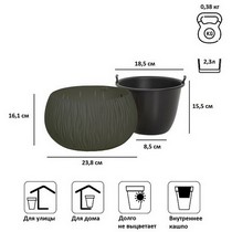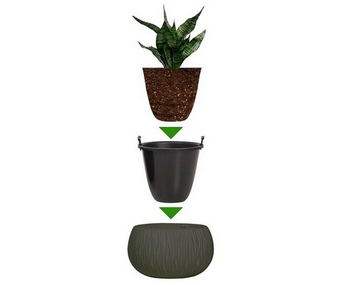 Кашпо из двух предметов: внутренней емкости для растения и декоративной емкости.