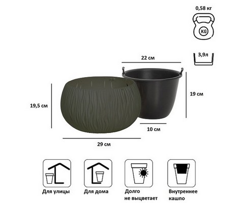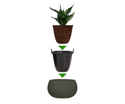 Кашпо из двух предметов: внутренней емкости для растения и декоративной емкости.
