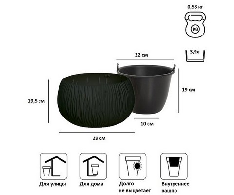 Кашпо для цветов Sandy Bowl DSK290-S433 3,9 л (антрацит)