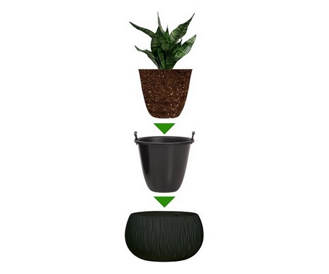 Кашпо из двух предметов: внутренней емкости для растения и декоративной емкости.