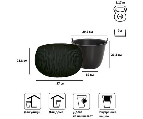 Кашпо для цветов Sandy Bowl DSK370-S433 9 л (антрацит)