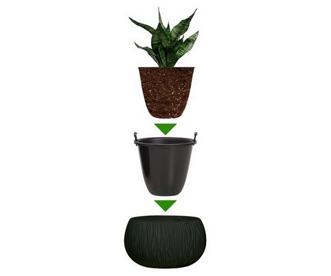 Кашпо из двух предметов: внутренней емкости для растения и декоративной емкости.